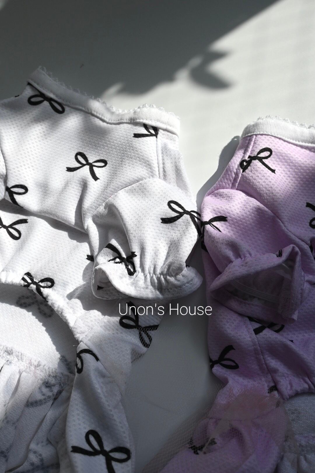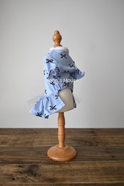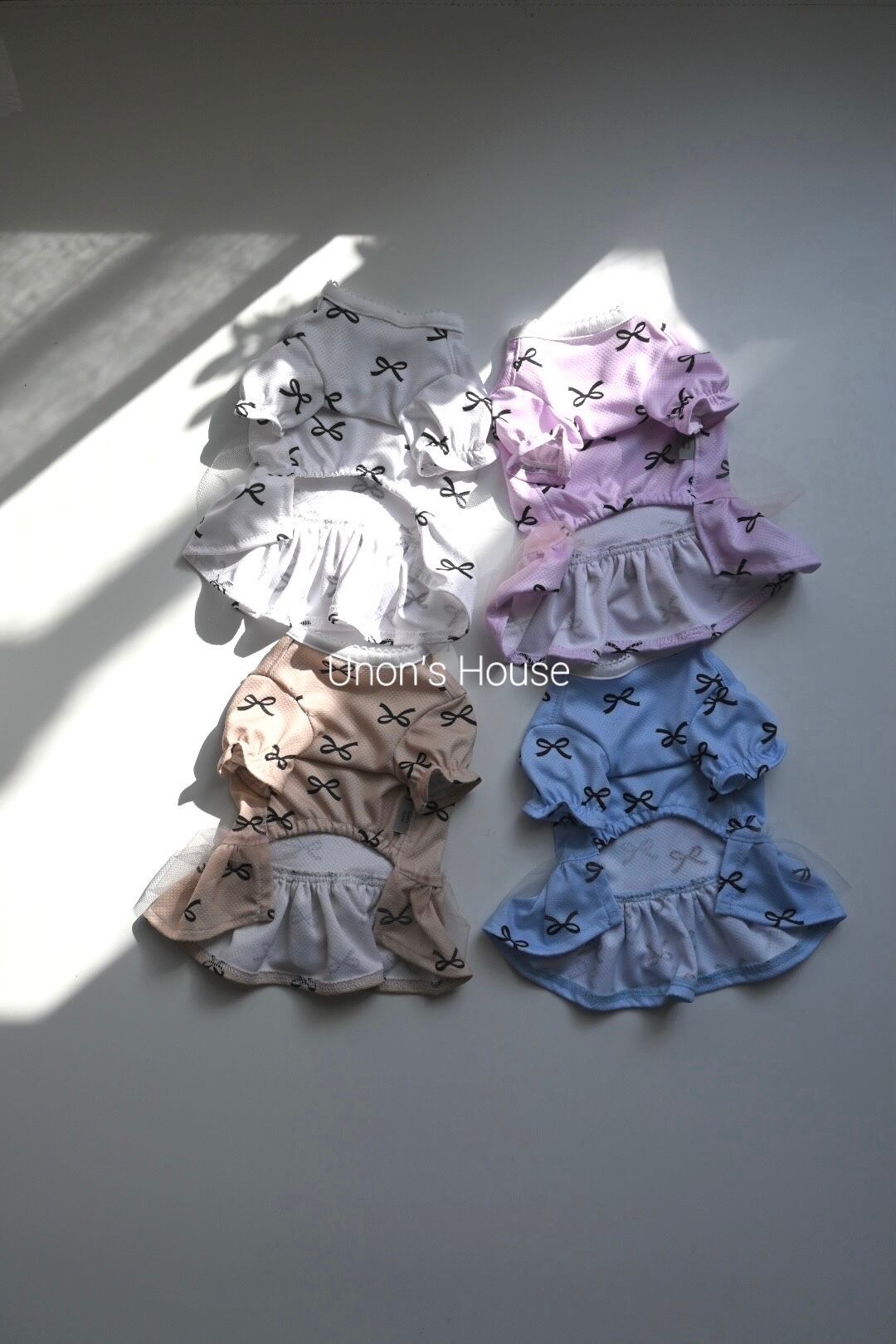 冷たくてひんやりと気持ちが良い接触冷感ニット生地のワンピースの登場です。上品なカラーのリボン柄♪冷感ナイロン糸を使用していますのでそのままでも冷たく、水に濡らすと特殊異形断面の糸によって気化熱作用が促進され、これまたひんやりとします。首や肩に巻くのはもちろん、ワンちゃんが気持ちよく過ごせそうです。スカートにかわいらしくチュールをつけました。熱がこもらないようにチュールは一枚で仕上げました♡