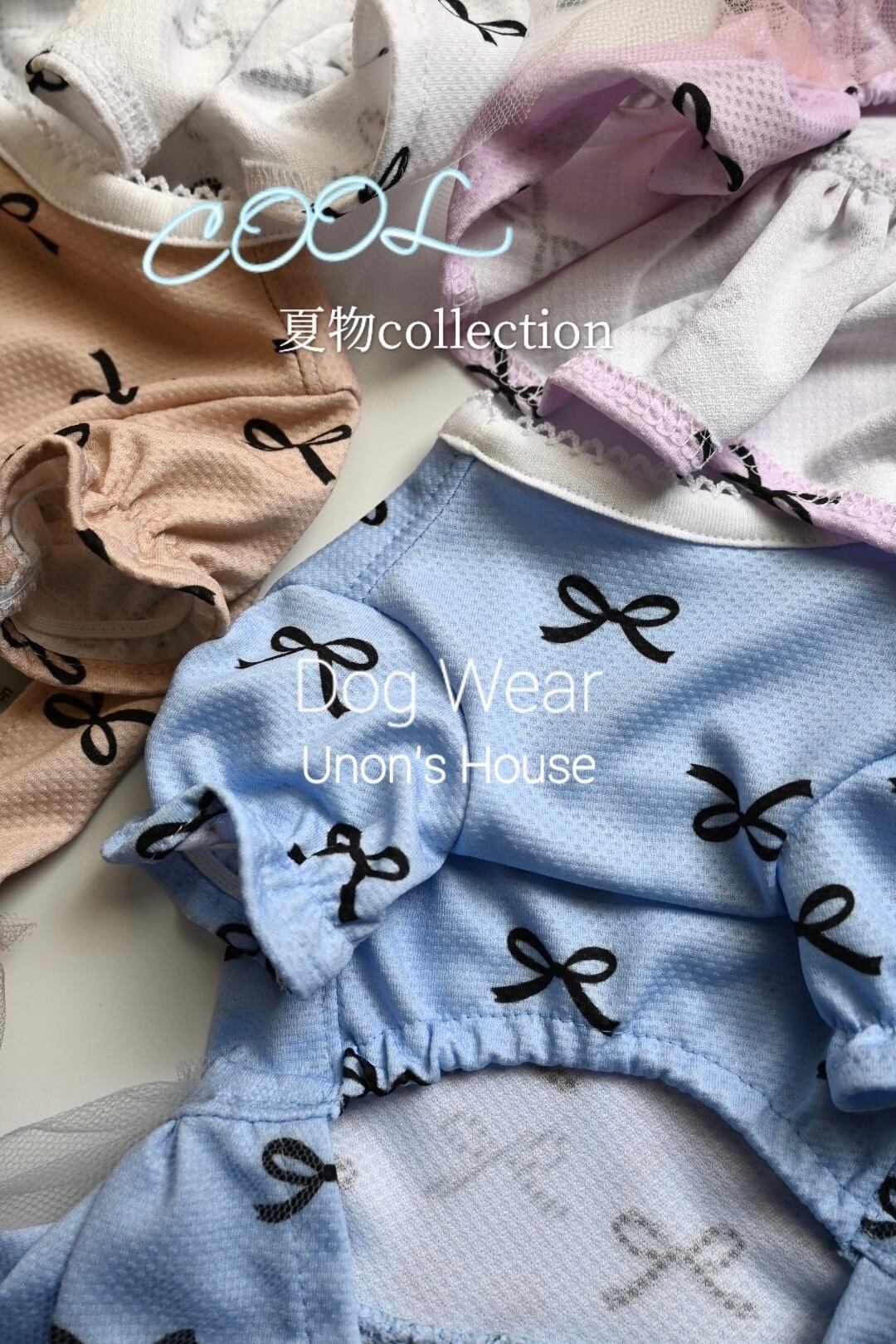 わんこ服夏物collectionスタートです!ひんやりクールクロスニット生地を使ったお洋服や綿素材の涼しげなワンピースなど製作準備中です✨